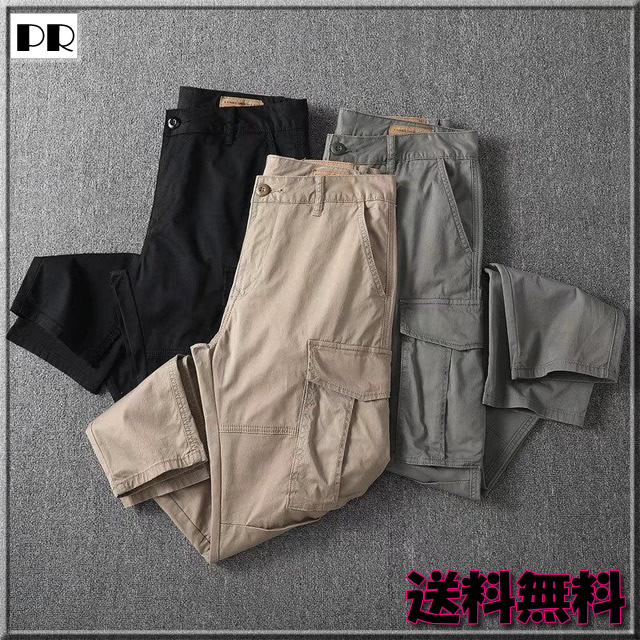 レトロカーゴパンツ メンズカジュアルパンツ ブラック カーキ グレー M L XL 2XL 3XL 普通サイズ~大きいサイズ